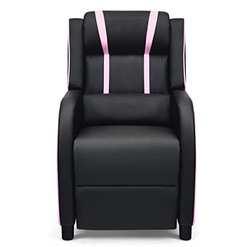 • Convenient Features: The gaming recliner sofa has a side storage bag for placing books, magazines and other items, and a remote-control pocket for convenient access. It can be used as a single recliner sofa, game racing chair, home theater seating, or office chair. It is easy to assemble and clean, and can support a maximum weight capacity of 330 lbs. The overall dimension is 25" x 34" x 41" (L x D x H) and the open dimension is 25" x 64" x 30" (L x W x H).