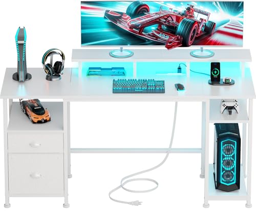 - [Large Desk for Ample Storage Space]: 61.3" long desktop can accommodate 2 displays and one printer, providing sufficient space for home office work; 3 open storage shelves, 1 fabric file cabinet and drawer increase additional space to meet different storage requirements for making your desktop more organized.