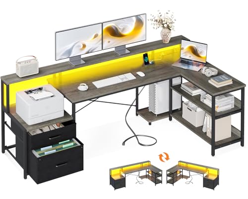 - 【Ample Storage Space】: The l shaped desk with storage offers ample storage solutions, including 2 file drawers, a printer cabinet, a 2-tier under bookshelf and a computer tower stand. With these features, you can easily keep your items organized and within reach.