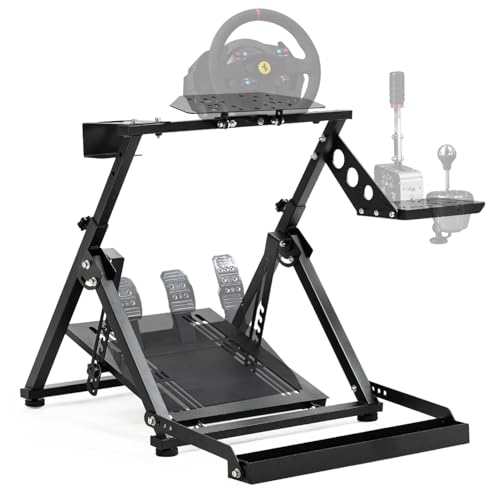 - 【Easy Adjustable】Racing wheel stand has a more flexible design, Foldable, height adjustable, pedal angle, wheel platform angle adjustable. Shift lever can be interchanged left and right.