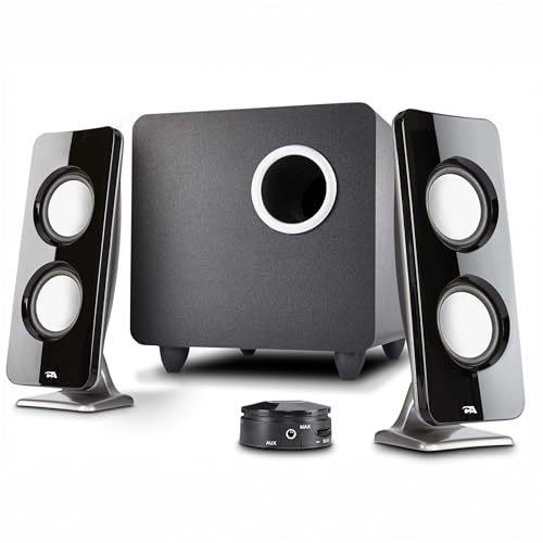 - High-quality audio – 2.1 speakers with subwoofer deliver 62W peak power and 30W RMS. Each satellite features dual 2-inch titanium drivers that deliver crisp highs and warm mid-tones while the 5.25-inch down-firing subwoofer with tuned port puts out deep, powerful bass, for excellent sounding music, movies, or games.